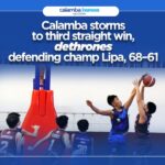 Calamba Basketball Elementary team secured its third consecutive victory after defeating the defending champion Lipa City, 68โ61, in the elimination round of the Regional Athletic Association Meet (RAAM) on March 9 at Lyceum of the Philippines UniversityโLima Campus. ย Calamba pulled away in the fourth quarter, building its biggest lead at 66โ44 after a strong continue reading : ๐๐๐ฅ๐๐ฆ๐๐ ๐ฌ๐ญ๐จ๐ซ๐ฆ๐ฌ ๐ญ๐จ ๐ญ๐ก๐ข๐ซ๐ ๐ฌ๐ญ๐ซ๐๐ข๐ ๐ก๐ญ ๐ฐ๐ข๐ง, ๐๐๐ญ๐ก๐ซ๐จ๐ง๐๐ฌ ๐๐๐๐๐ง๐๐ข๐ง๐ ๐๐ก๐๐ฆ๐ฉ ๐๐ข๐ฉ๐, ๐๐โ๐๐